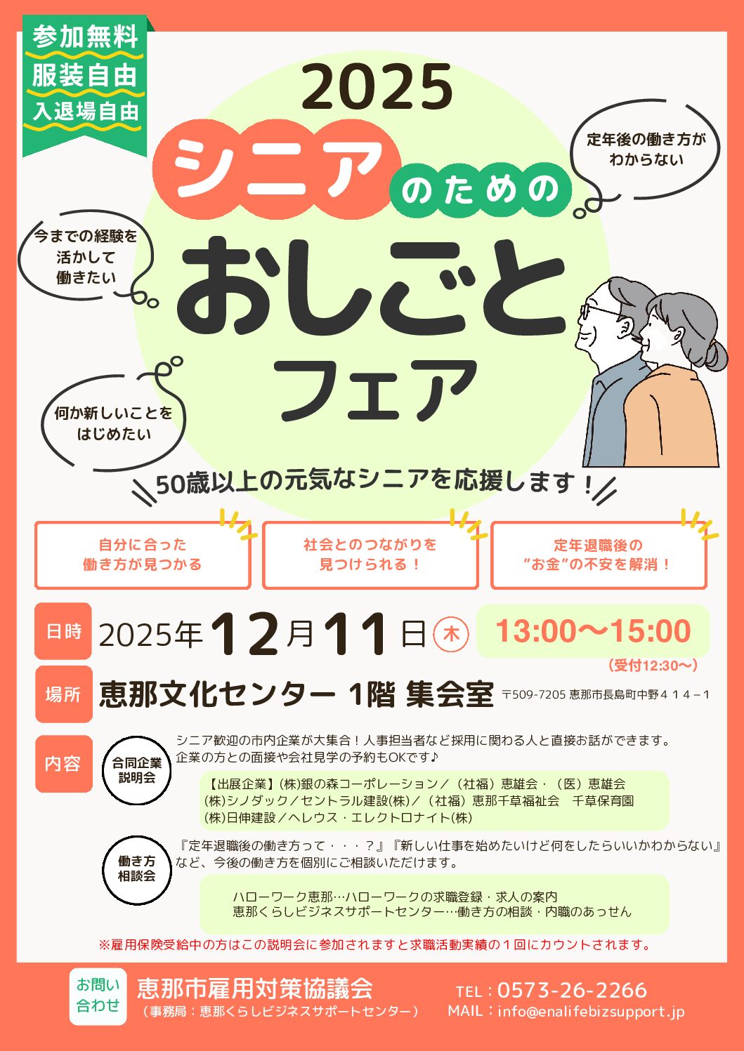 恵那くらしビジネスサポートセンターは、岐阜県恵那市でのビジネスに関するの総合相談窓口です。専門のスタッフが無料で相談に応じます。ビジネス相談、経営相談、起業相談、就職支援など、お気軽にご相談下さい。あなたのチャレンジを全面サポートします!