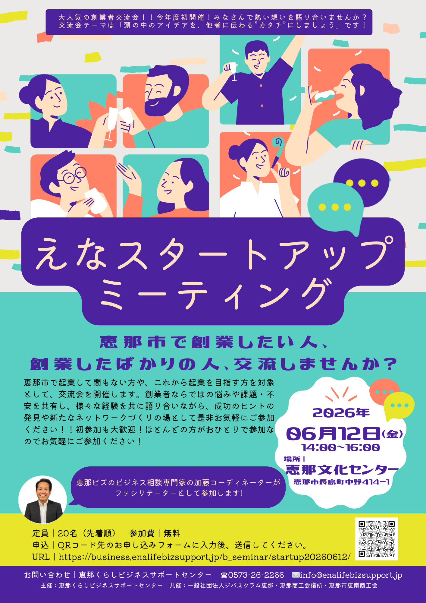 恵那市でこれから創業したい方、創業して間もない方を対象に、