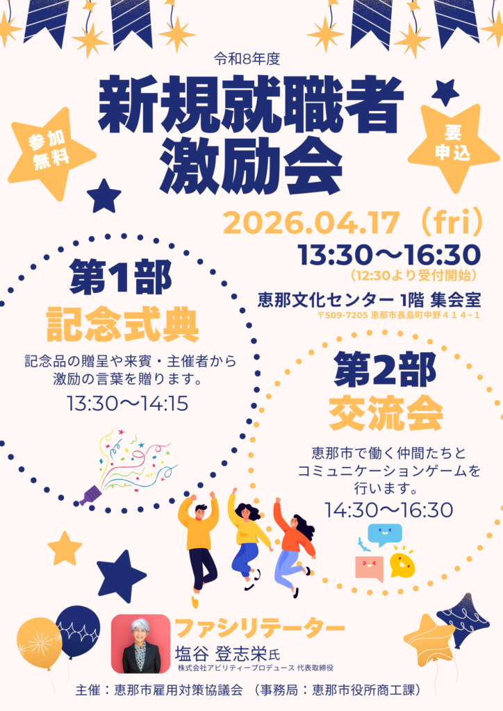 新規就職者激励会13:30~14:15 (受付開始 12:30~)