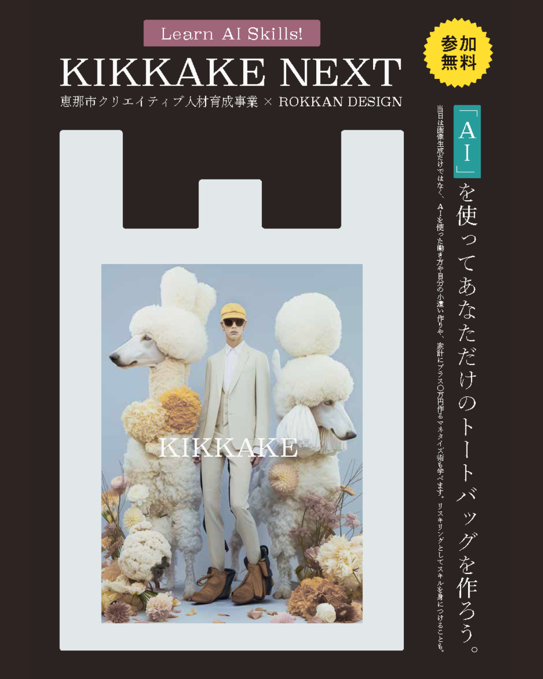 「好き」を、未来のスキルに。AIを使って、自分だけのアウトプットを作ってみよう。 \ KIKKAKE NEXT 開催!/今回は AIを使った“トートバッグ制作” にチャレンジします。「AIって難しそう…」と思っている人も […]