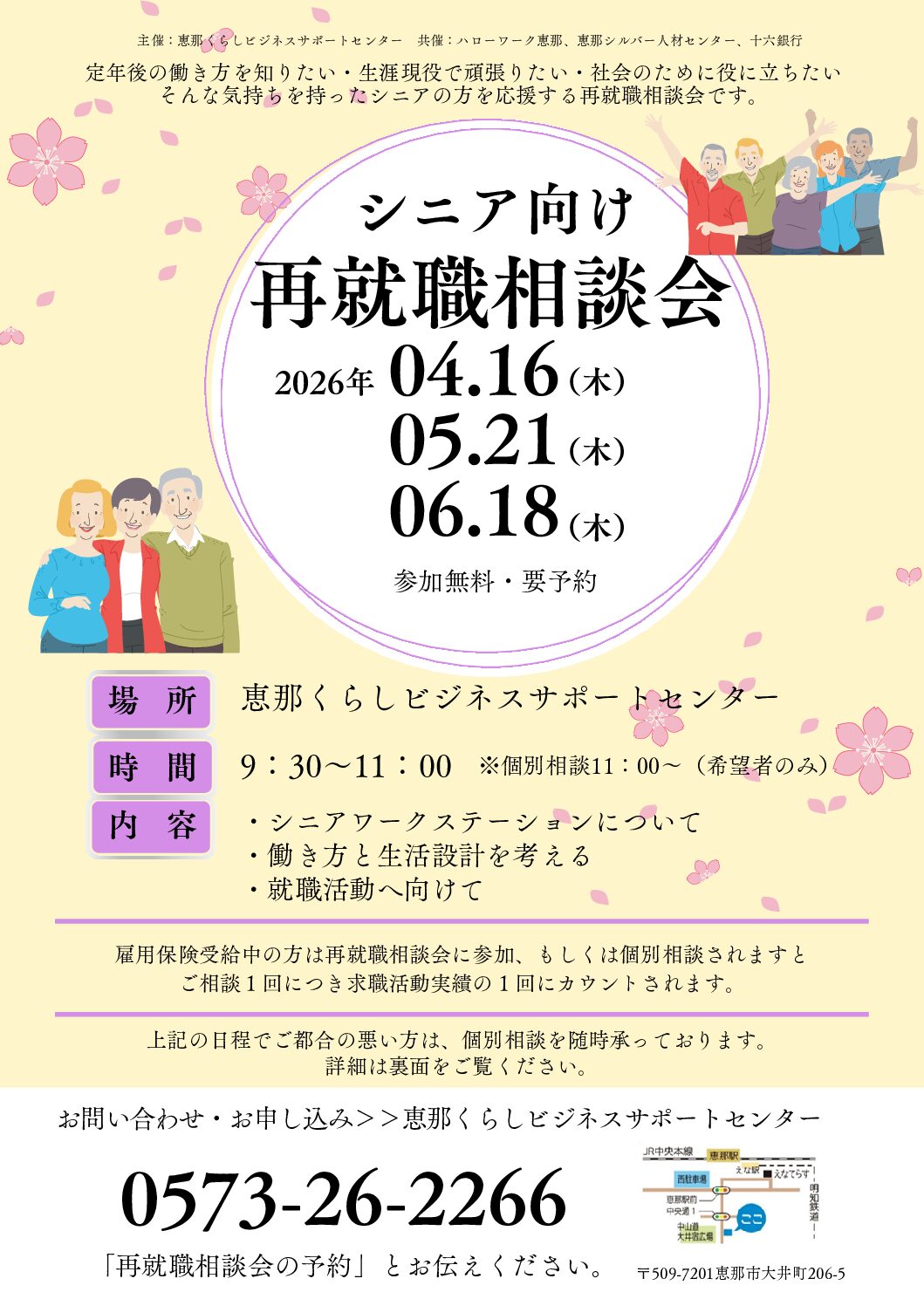 そんな気持ちを持ったシニアの方を応援する再就職相談会です。